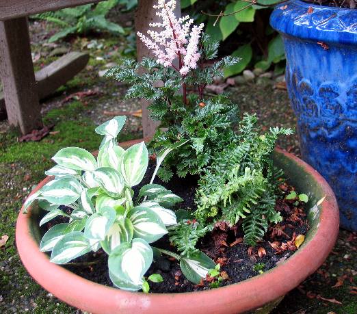 Ich habe schon seit Jahren Farn eim Topf - wichti gist, wie bei Hosta, daß sie im winter nicht zu naß werden. Links auf dem Fotos das ist Dryopteris peelea atropurpurea, steht schon seit 4 Jahren in dem kleinen Topf und rechts das ist ein Athyrium filix femina.LG, Carola
