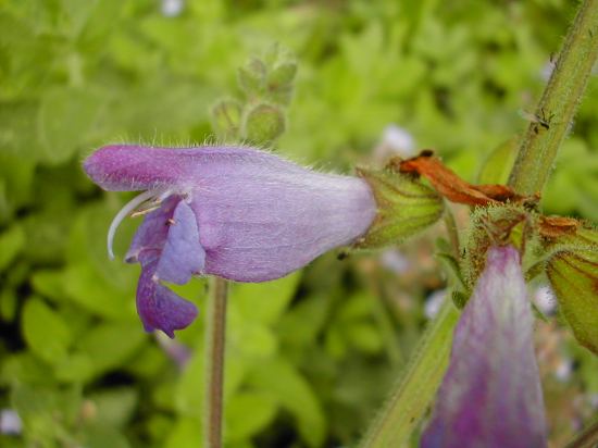 hier die dazupassende blüte: größer aber genauso bauchig wie bei salvia hians.auch gut zu erkennen: die für kleinstinsekten oft tödliche klebrigkeit der triebe