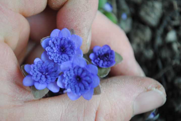Ein Neuzugang von A. Händel, noch ganz klein:Hepatica x media 'Blaue Stunde'
