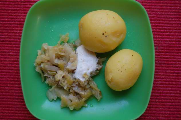 Ich hatte Auberginen"kaviar" mit Toast. Zum ersten Mal gemacht, sehr lecker.