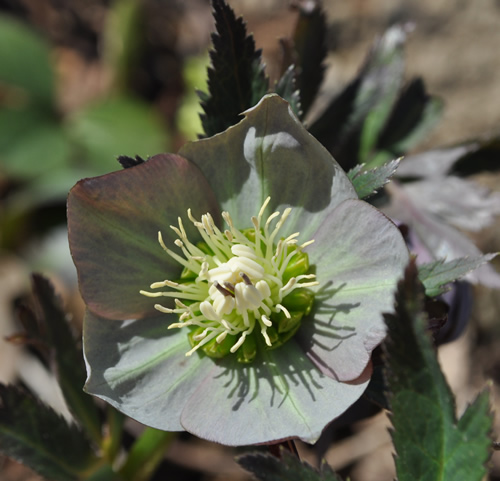 Hier eine recht kleine Helleborus mit feingliedrigen Blättern: