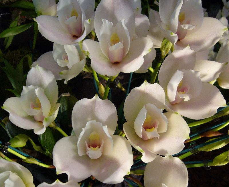 Etwas Farbe zur weißen Grundtönung bringt das sehr ansehnliche Dendrobium wardianum.