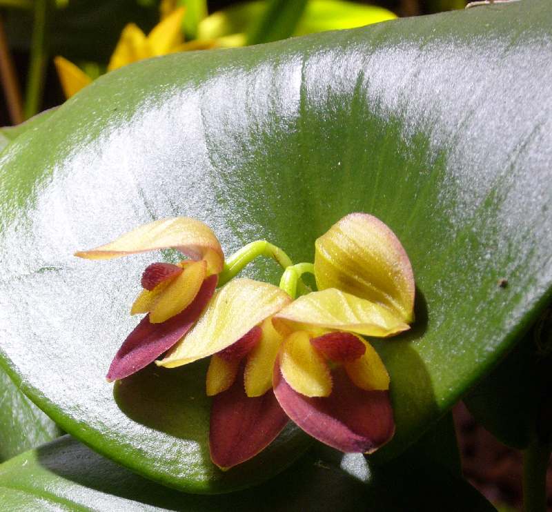 Auch weniger auffällige Orchideen waren gut in Szene gesetzt. Ein recht großes Pleurothallis.
