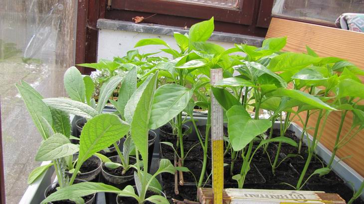 Mein Paprikadschungel bestehend aus zwei gleichzeitig gesäten Sorten: