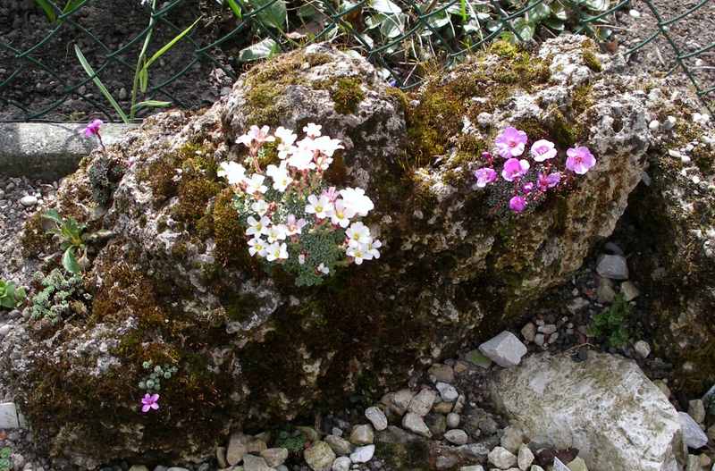 Ein paar Bilder von heute. Zuerst ein Tuffsteinbrocken mit Saxifragen.