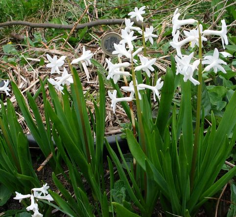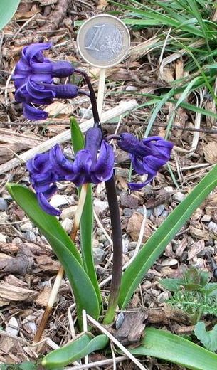 Vermutlich sind das keine Wildformen im botanischen Sinn. Aber die Blüten sind viel kleiner als die degenerierten Kulturhyazinthen.Die wirken ja meist wie aus Plastik auch mit dem lockeren Blütenstand.Ich mach heute mal ein Foto im Vergleich mit einem Eurostück.Vergleiche mit abgebauten (Jahrzehnte) Gartenformen habe ich schon im Thread eingestellt (post 9).