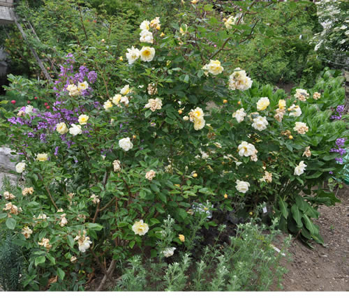 Ich weiss nicht, ob ihr Cornelia als gelb(lich) anschaut. Sie war bei mir 18 Jahre lang ein schöner schulterhoher Strauch. Dieses Jahr fängt sie von ganz unten neu an.