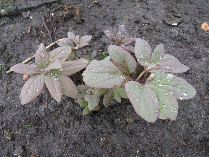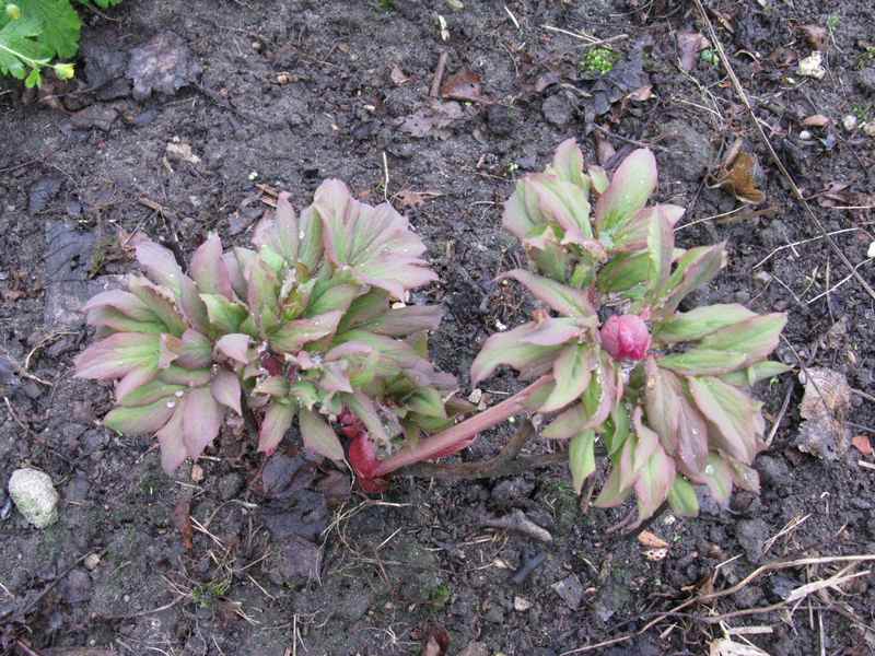 Wie Paeonia mollis unter P. officinalis eingeordnet werden kann, ist mir schleierhaft. ???Es scheint mir eine Hybride zu sein, in der alles mögliche stecken könnte. Ich habe seit Jahren Absaaten, von denen die ersten geblüht haben. Einer der Interressantesten ist dieser. Auslaufertreibend und mit grünen (!) Winterknospen.Uns ich habe auch noch einen ähnlichen, der horstig wächst.