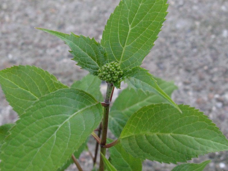 Letztes Jahr habe dieses schöne Foto einer Hydrangea serrata auf Flickr.com entdeckt, die ich sortenmäßig nicht einordnen konnte.Nachdem ich die Fotografin (übrigens ein seltener Gast hier im Forum) aus der Schweiz angeschrieben habe und nach der Sorte fragte, schenkte sie mir einen Steckling, der sich schon letztes Jahr prächtig entwickelte. Die Mutterpflanze stammt aus Japan, wurde dort auf einem Wochenmarkt ohne Namen erstanden und auch als Steckling nach Europa gebracht.Mein Exemplar habe ich frostfrei überwintert und es ist jetzt schon 25 cm hoch. Ich konnte sogar schon erste Blütenknospen entdecken, was für einen einjährigen Steckling, dem im Herbst die Spitze ausgekniffen wurde, ungewöhnlich und sehr erfreulich ist.Nun braucht das schöne Kind jedoch einen Namen. Es scheint jedenfalls keine der hier in Europa bekannteren Sorten der Berghortensie zu sein. Sie hat bei mir zunächst folgenden Arbeitsnamen bekommen: