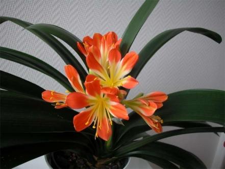 Das ist ein guter Vorschlag von RosaRot. Wenn die Pflanze genügend Blätter und die Blütenanlage bilden konnte sowie die erforderliche Zeit für die Kühlphase unter 15 °C zur Beendigung der Ruhephase der Blütenanlage bekommen hat, muss man nicht unbedingt warten, bis sich der Blütenschaft zwischen den Blättern zeigt. Man kann die Pflanze auch ruhig vorher wärmer stellen. Wenn die obigen Bedingungen stimmten, wird sie noch blühen.Hier eine nette gelbe Klivie. Ich drehe meine Klivien alle zwei Tage um 180 Grad am Fenster, wenn der Blütenschaft wächst, damit er nicht so schief wird. Dann stelle ich die fast voll erblühte Klivie ins Wohn- oder Esszimmer, so dass ich sie sehr oft sehen und genießen kann. Natürlich würden meine Klivien auf dem kalten Dachboden viel länger blühen, aber da bin ich nun einmal sehr selten. Ich weiß gar nicht, warum immer noch diese seltsamen Anweisungen wie „immer auf dem selben Platz stehen lassen, bloß nicht drehen, sonst fallen die Blüten ab usw.“ immer wieder erteilt werden. Häufig liest man dies in Gartenforen oder ein Buchautor scheint unbewiesene Behauptungen von einem anderen abzuschreiben. So ähnliche Beispiele findet man auch bei der Kamelienkultur. Viele liebe GrüßeElke