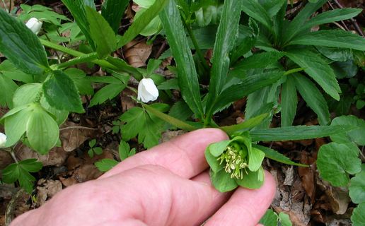eine Kreuzung von Helleborus, die einen anständigen Namen hat, heute im Hermannshof aufgenommen:Helleborus x nigercors 'White Beauty' in einem Teppich von Bärenfell-Schwingel. Fand ich sehr schön.