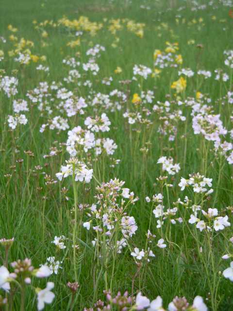 :DAn solche Sträuße aus meiner Kindheit erinnere ich mich auch noch :DAber hier wüßte ich heute keine Wiese, wo ich die Blumen von damals noch finden würde (außer LöwenzahnIch habe lange gebraucht, bis ich das Wiesenschaumkraut überhaupt als "schön" wahrgenommen habe. Jetzt liebe ich es, in Kontrast mit dem Rosa der alten Apfelbäume und dem Grüngelb der Himmelsschlüssel.Als Kinder haben wir damit immer so dicke Sträuße gepflückt, die man nur in einen Eimer stellen konnte.