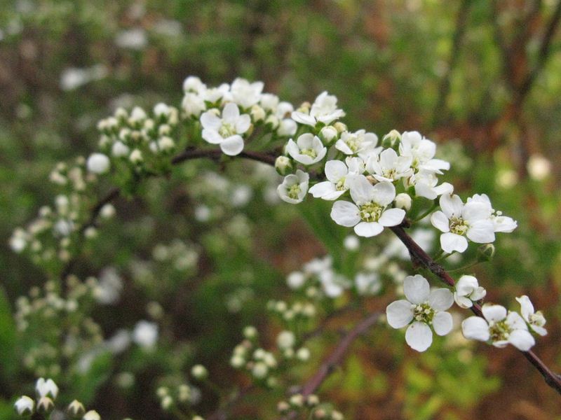 Wenn ich im Frühjahr durch den Garten schleiche, ist die Brautspiere eines der ersten Blütengehölze, an denen ich mich erfreuen kann.Eigentlich ist Spiraea ja ein Allerweltsgehölz. Aber ich finde nicht nur die Blütenaspekte schön sondern auch das Laub, das von Art zu Art recht deutlich varieren kann.