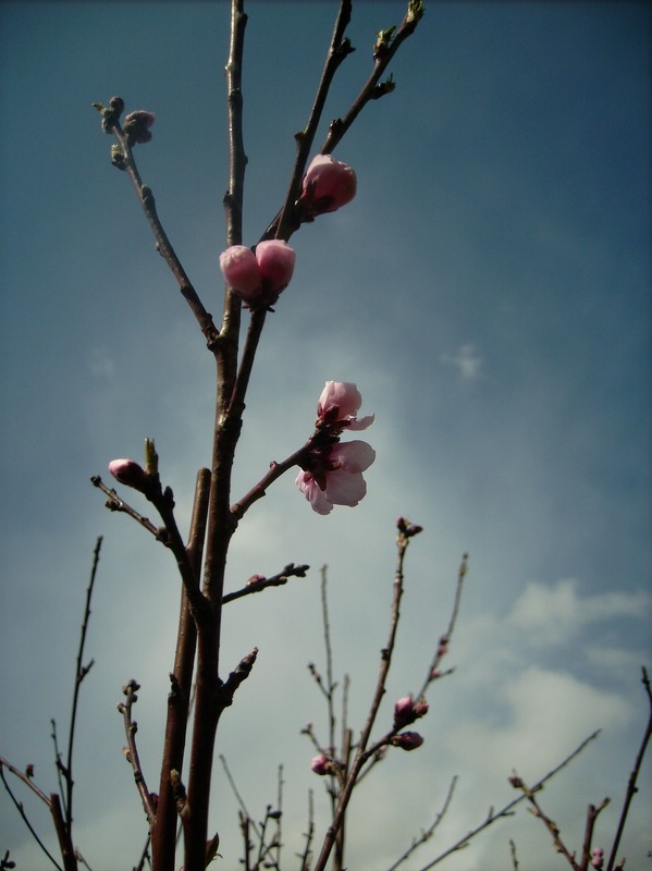 Unser Pfirsichbaum ist munter geworden.