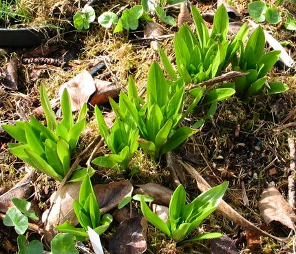 Axel, ich habe meine Lilien nach wie vor in Töpfen, leider noch keine Zeit gehabt, sie auszupflanzen.Meine L. tsingtauense habe ich aus 2 verschiedenen Quellen, beide haben diesen leicht gewellten Blattrand und rollen etwas ein.Hier ein Foto (Quelle 1) vom Austrieb Anfang April (L. tsingtauense links unten)