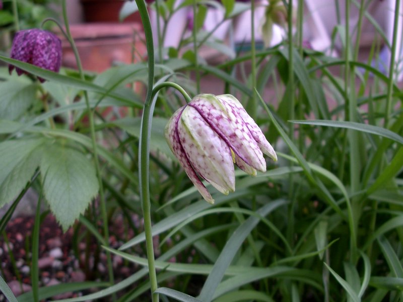 Sämlinge von Fritillaria meleagris fallen fast immer in die Stammformen rot oder weiß. Selten gibt es ausgeprägte Zwischenformen. Hier ein solcher Spontansämling aus meinem Garten.