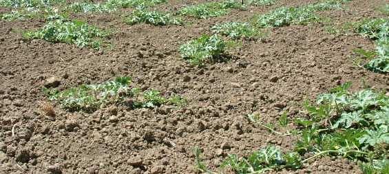 Dass die Wassermelonen wenig Wasser benötigen, kann ich bestaetigen. Mein erster Versuch in diesem Jahr, ich goss die auf dem Markt gekauften Pflaenzchen ausgiebig und weg waren sie. Dann legte der Bauer auf dem Feld nebenan Wassermelonensamen in die Erde mit viel Wasser und dann wuchsen sie; nach etwa vier Wochen hat er mal wieder gewaessert und sie wachsen praechtig, so gar zu uns herüber