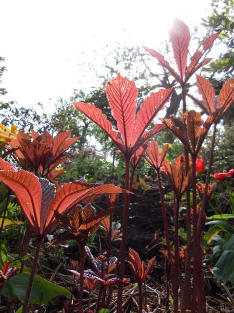 So, Rodgersia" Rotlaub" kommt zum Vorschein. Die Pflanze war schon da, als es noch kein Monsunwald war und taucht überall mal auf