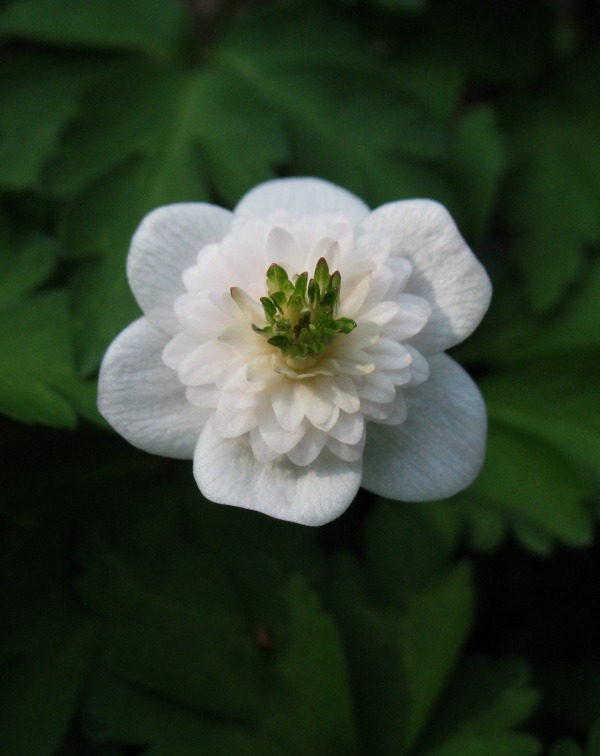 So langsam scheinen sich die Bestände von Anemone nemorosa 'Thekla' und 'White Cup' zu etablieren.Hier 'Thekla' mit 'White Cup' und Jeffersonia dubia im Hintergrund.