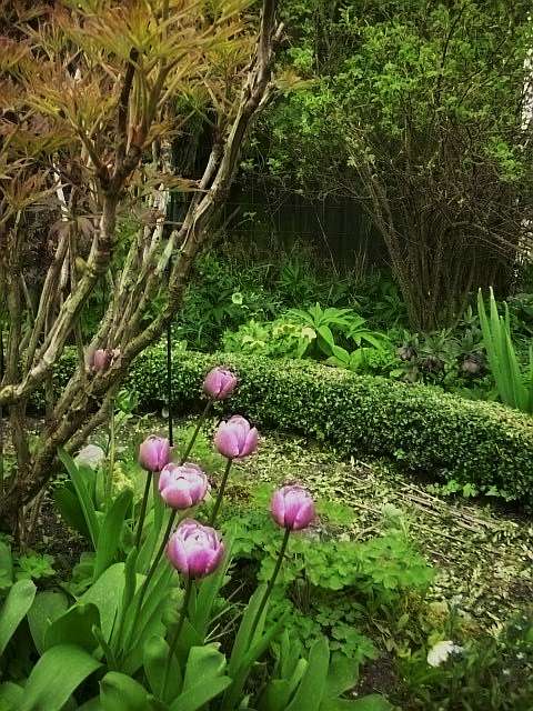 Meine Quitte ist gestern "erst" erblüht, heute Iris media, die Akeleien stehen noch in den Startlöchern, Allium ist noch knospig...