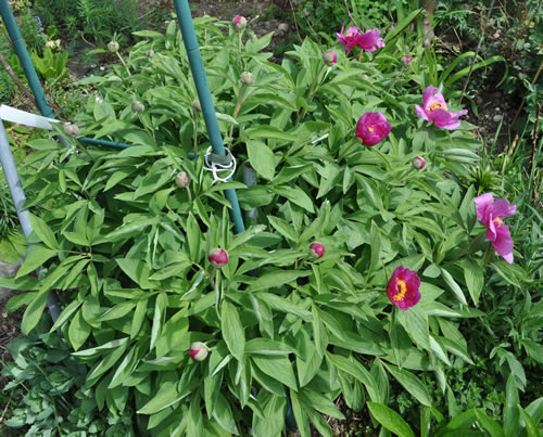 Diese Pflanze habe ich auch im Garten, breiteres Laub, Blütenfarbe eher rot.was hältst du von diesem hier: Paeonia x smouthii?