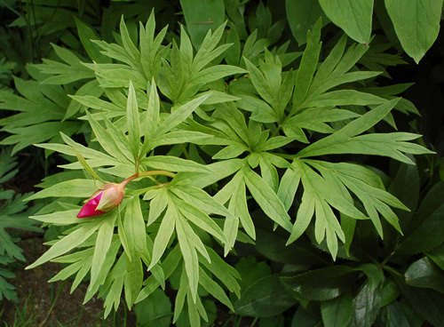 Hier Knorbs, nun auch noch mit der neusten und aktuellsten Bezeichnung.Paeonia anomala ssp veitchiiokay, aber in der vergrößerung sehe ich auf dem foto nur eine terminalblüte, noch nicht mal ansätze für sekundärnospen. deswegen mein hinweis.