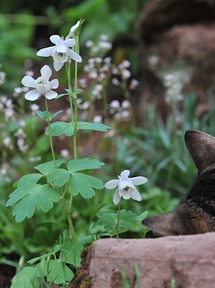 Mit Katzenöhrchen, wie nett!!!Aquilegia flabellata ist in den letzten Zügen. Ich habe die Samen als Aquilegia flabellata 'Nana Alba' bekommen, die Pflanzen sehen aber genau so aus, wie Aquilegia flabellata var. pumila...