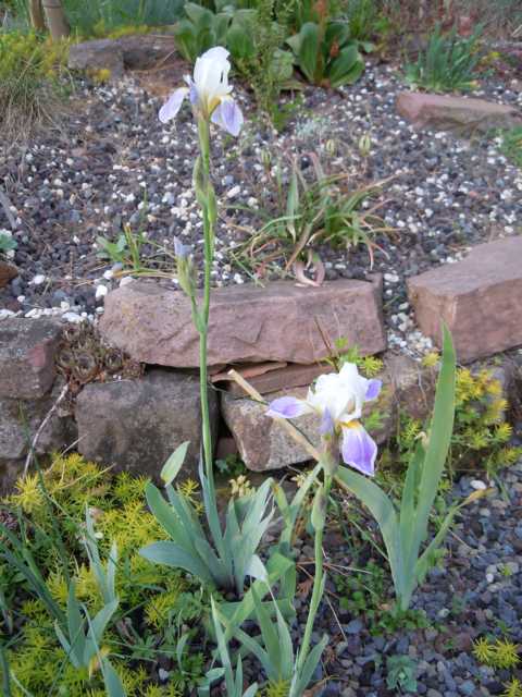 )Hast du die Erde im Wüstenbeet vom Wiesenboden getrennt? Die Pflanzen würden mich auch interessieren.Hier mal "Gravel Garden" im Spessart:Meine Lieblingsiris "Bit o Afton" (weil sie so Mini-Blüten hat, die nicht alles übertrumpfen)