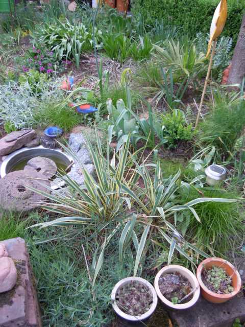 Für dieses Schlangenbeet habe ich damals den Boden 40 cm tief ausgehoben, unten rein eine Kiesschicht als Drainage, zusätzlich den sandigen Bodenaushub mit mehreren Säcken Liapor gemischt (haben eine Liaporwerk in der Nähe).Hast du die Erde im Wüstenbeet vom Wiesenboden getrennt? Die Pflanzen würden mich auch interessieren.