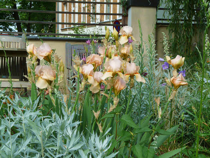So jung und schon steinreich.Hier mal "Gravel Garden" im Spessart:Meine Lieblingsiris "Bit o Afton" (weil sie so Mini-Blüten hat, die nicht alles übertrumpfen)