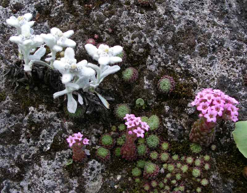 Meine Bewunderung, v.a. für die Physoplexis .Sedum pilosum und Sedum sempervivoides sind frei im Kübel ausgepflanzt kaum lebend über den Winter gekommen. S. sempervivoides hat sich ganz verabschiedet, lässt jetzt aber eine ganze Reihe Sämlinge aufsprießen, deren Samen mit den Jungpflanzen im Topfsubstrat gesteckt haben muss (wie sich später zeigte, der Samen einer weiß blühenden Delosperma-Art).S. pilosum hat mit winzigen Bruchstücken noch die Blüte geschafft und wird hoffentlich daraus ebenfalls Samen hinterlassen - so es denn verschiedene Elternpflanzen oder die Sedum-Arten selbsfruchtbar sind. ... im Substrat steckte offenbar noch der Samen für diese ca. 1 cm im Kubik große Unbekannte. Kann jemand sagen, was das einmal wird, das im rechten Bild?
