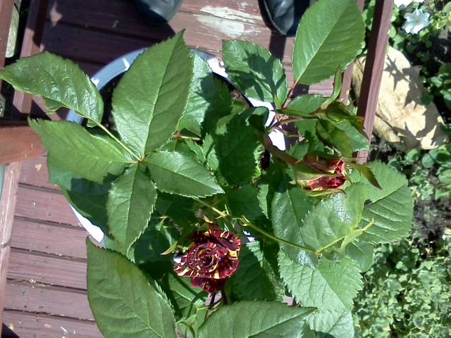 Endlich kann ich auch mal was zeigen. Meine erste Rosenblüte dieses Jahr.Die Rose war zur Hälfte weggefroren, nun sieht sie wieder ganz gut aus.Jaqueline du Pres