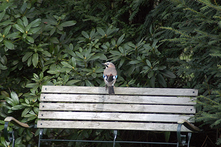 Silvia hatte es zuerst:Eichelhäher :)Wenn ich die Kamera nicht in der Hand bzw. schussfertig habe, spazieren sie in bester Fotoposition umher oder sitzen sogar völlig ruhig da. Auch mein Weggehen, um die Kamera zu holen, stört sie nicht.Wenn ich aber die Kamera so weit habe, fliegen sie weg.Immer :(Nun hinterließ der wenigstens einen netten Wischer.HähergrüßeThomas