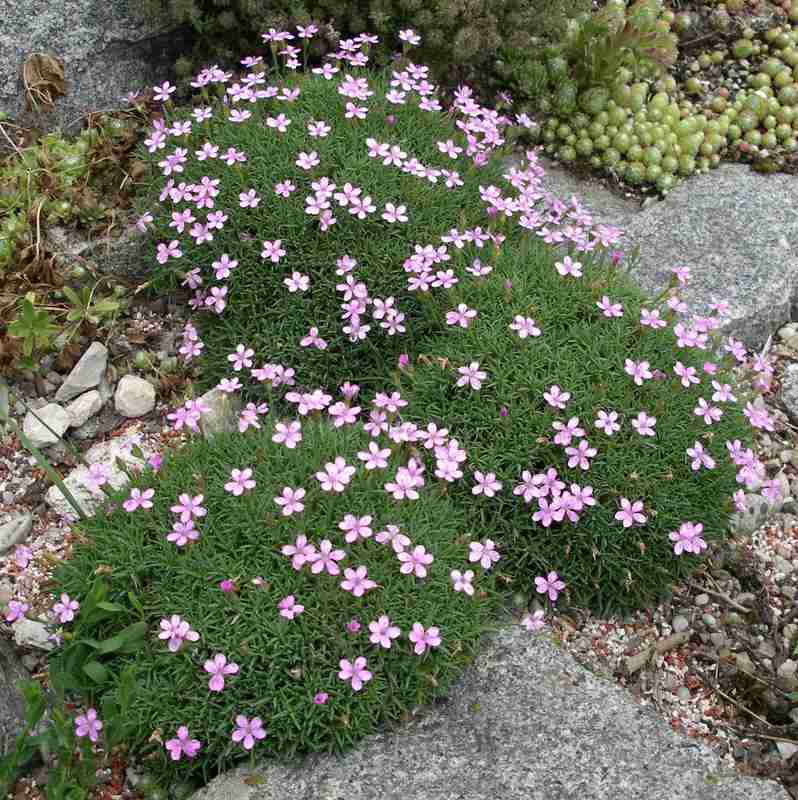 Dianthus arpadianus var. pumilio, eine der zahlreichen hübschen Steingartennelken.