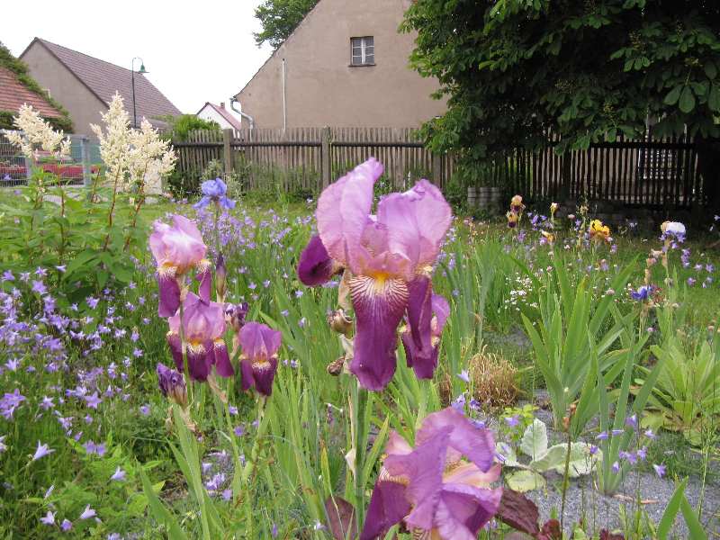 Das Irisbeet ändert jetzt sein Gesicht. Noch blühen letzte iris, übernommen hat aber jetzt Campanula patula.