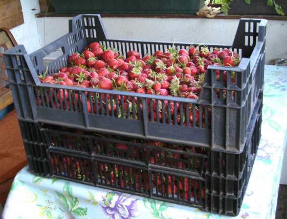 Ich habe heute fast ein Kilo Erdbeeren geerntet, außerdem 2 Mairübchen und 1 Kohlrabi.