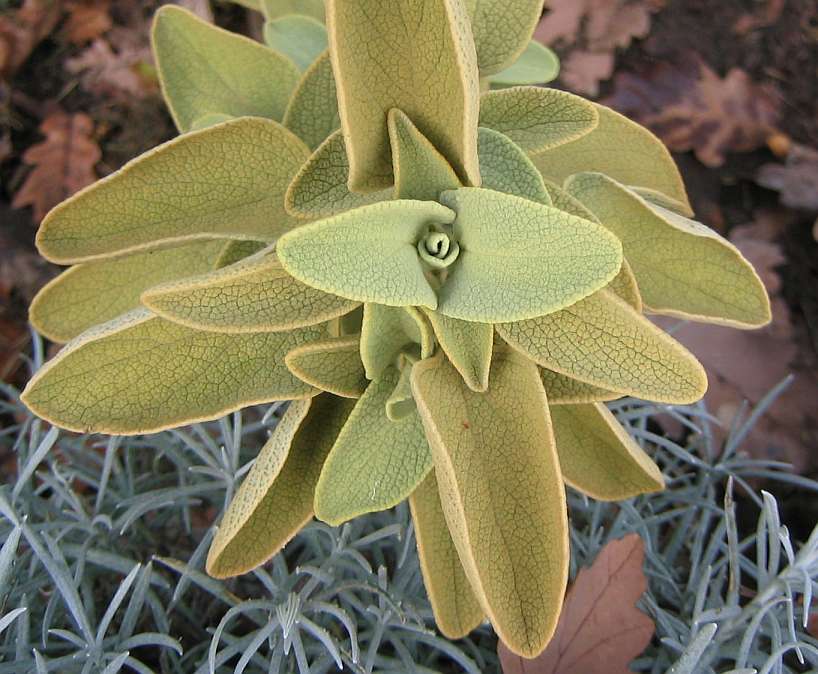 Phlomis chrysophylla hat bisher nicht geblüht doch die Blätter sind sehr schmückend.Die gelbe Verfärbung ist typisch für die Art.