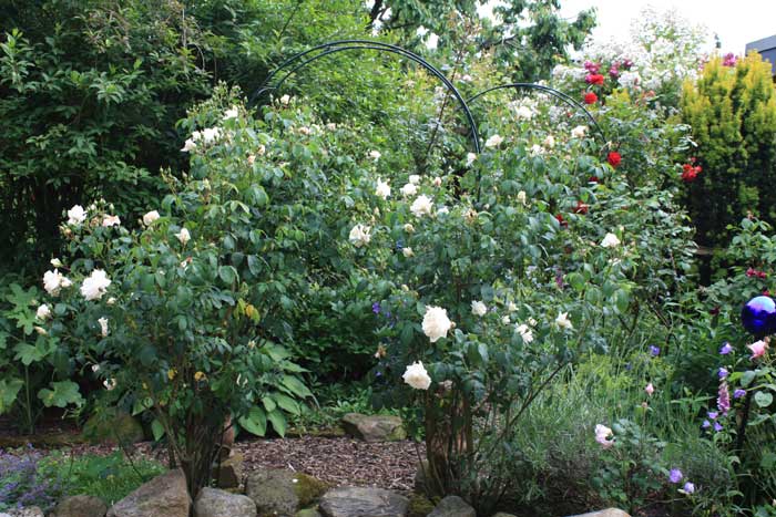 Nein, FBB, dieser Bogen ist noch nicht krumm.(Am krummen Bogen steht Comtesse Vandal, die ihren Bogen ja bis jetzt noch nicht gebraucht hat).ist das der schiefe Bogen?Eine steht bei mir am Marterpfahl, die andere am Rosenbogen, keine Probleme. Man kann sie ganz gut biegen. Immer ein bischen mehr, bis es passt. Kann ja morgen mal ein Foto machen.![]()