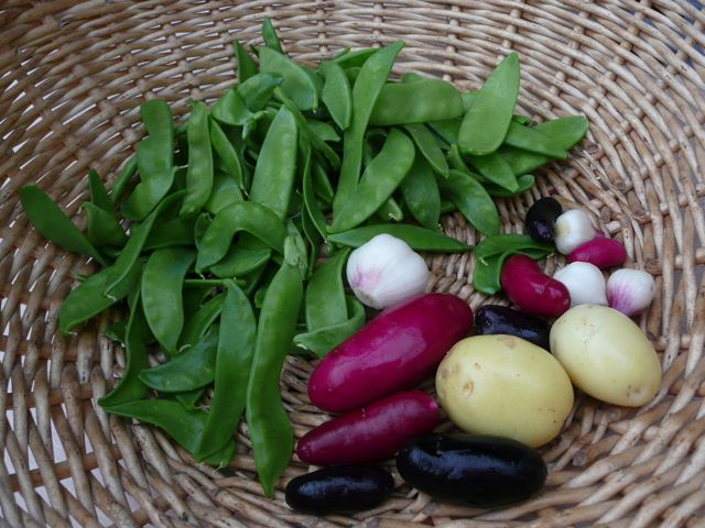 meine zuckererbsen blühen jetzt, kann also auch nicht mehr lange dauern, bis ich die ersten schoten ernten kann.hab aber nur ein paar pflanzen, so dass es mehr ein naschgemüse sein wird.ich ernte bisher nur blattspinat, salat und kräuter. das dafür massenhaft.gestern konnte ich die erste größere menge meiner gelben frühen himbeeren ernten