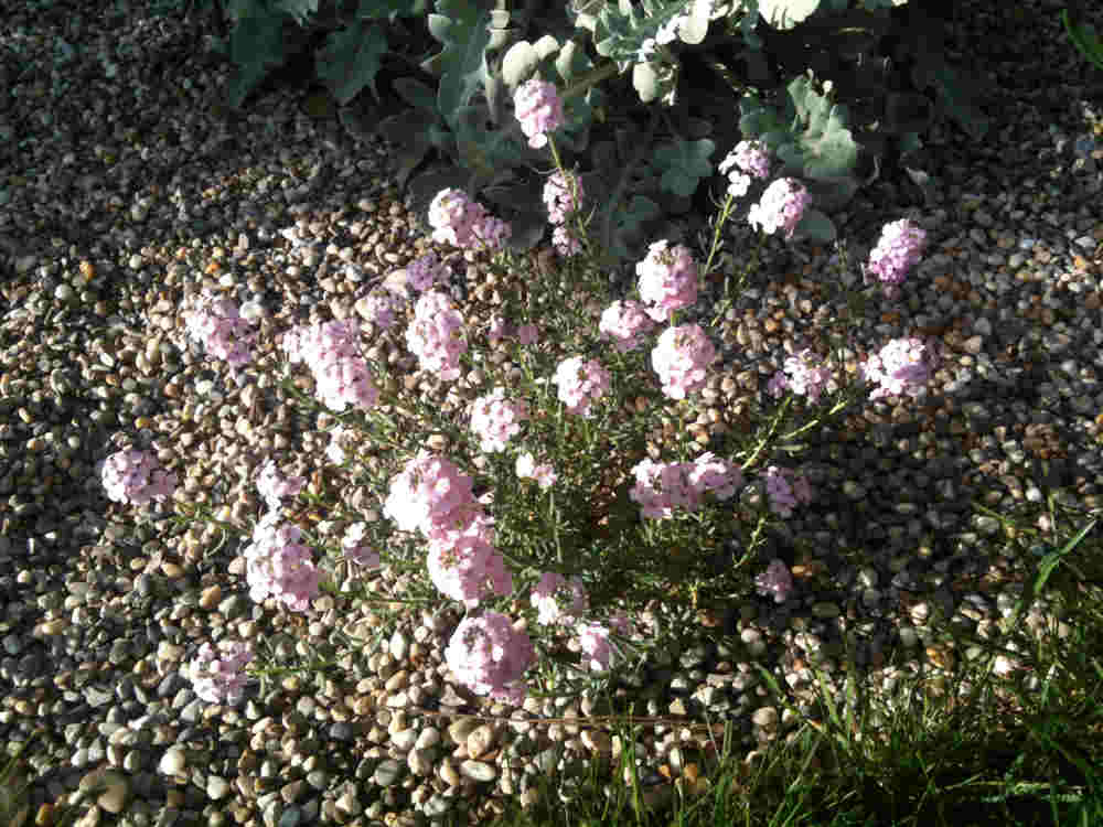 Noch etwas bei mir bisher unproblematisches, ziemlich früh und lange blühendes: Aethinonema grandiflorum, das persische Steintäschel (Anatolien, Kaukasus, Iran..).Sieht in Wirklichkeit besser als auf dem Bild und ist ideal um kleine Löcher "zu stopfen", für Bordüren oder Mauerritzen. Mag es ebenfalls sehr trocken und sonnig.Wurde ebenfalls im Vorjahr ausgepflanzt.