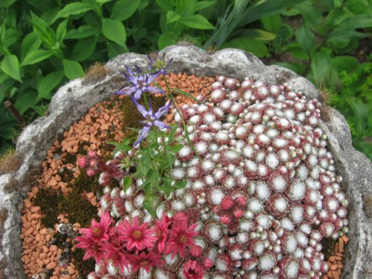 Hab bestimmt schon 3 Jahre lang immer etwas aus einer Schale gepflückt, weil ich dachte es wäre Unkraut, aber nie bei den Wurzeln zu fassen gekriegt und dieses Jahr vergessen. Nun blüht hier eine etwa 10 cm hohe Pflanze, die ich noch nie vorher gesehen hab. Könnt ihr mir bitte helfen?