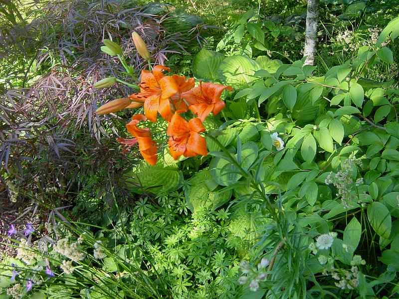 heuer blüht erstmals eine samengezogene Lilium canadense var. coccineum, daher nur eine blüte. ob canadense in meinem sandigen humusboden jemals zu stattlicher größe mit zahlreichen blüten heranwachsen kann, wird sich zeigen. ich fürchte eher nicht + kann froh sein, wenn sie mal mehr als eine blüte produzieren. eine gekaufte canadense var. coccineum produziert immerhin schon mal 2 blüten, ist aber noch nicht aufgeblüht. canadense bevorzugt schweren lehmboden. zumindest hatte ich mal eine in meinem früheren garten in schweren lehm stehen + die war sehr groß mit vielen blüten. canadense ist ohne zweifel eine der elegantesten wildlilien.