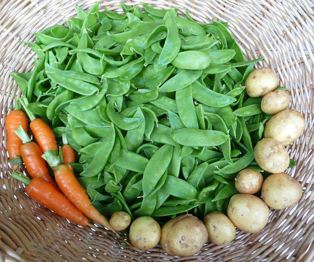 Die ersten Kapuzinererbsen, Zuckerschoten, Möhren, ein paar Kartoffeln.