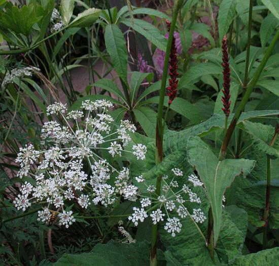 Athamantha turbith blüht hier auch (eingetopft gekauft bei der Gärtnerei und wahrscheinlich im Gewächshaus vorgezogen) bzw. bis gerade eben wusste ich mit Sicherheit nur, dass es Athamantha spec. war, weil das Schildchen verlorengegangen war. Das Laub ist wirklich wunderbar!Leider sind die Lichtverhältnisse heute morgen ungünstig in unserem Vorgarten - Cortia wallichiana (Selinum wallichianum) Cenolophium denudatum ist ein guter Mitspieler im Staudenteam: