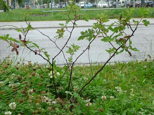 möchte auch kurz berichten. Vor ca. 2 Monaten habe ich eine kleine wurzelechte BPR in eine Wiese gepflanzt, gestern wollte ich hin, weil ich dachte, ich müsste abgestorbenen Äste schneiden, aber bei dieser Rose gibt es wohl die Besonderheit, dass im unteren Bereich oft keine Blätter an den Ästen sind, oben aber schon und auch Knospen. Also natürlich nicht abgestorben. Ich hab sie dann einfach nur fotografiert.