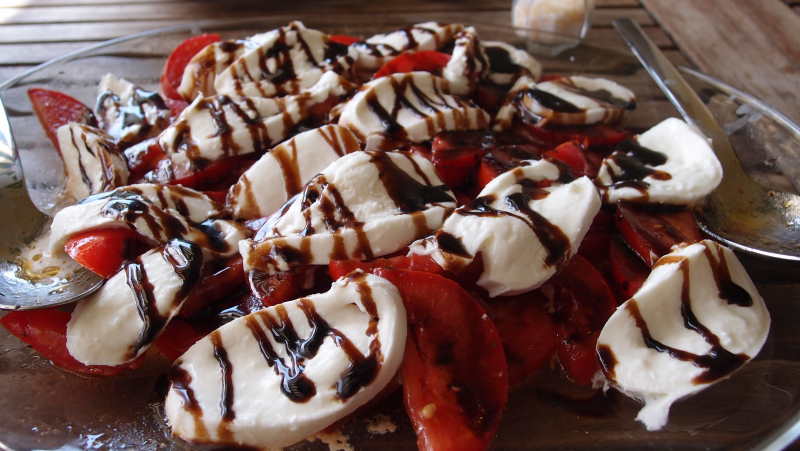 dazu tomate-mozzarella. leider noch mit gekauften tomaten. meine sind noch nicht soweit.