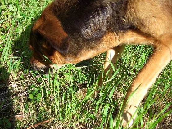 Am Wochenende ist mir dieser Schnapppschuß gelungen. Nelly, wie sie sich im Gras wälzt.