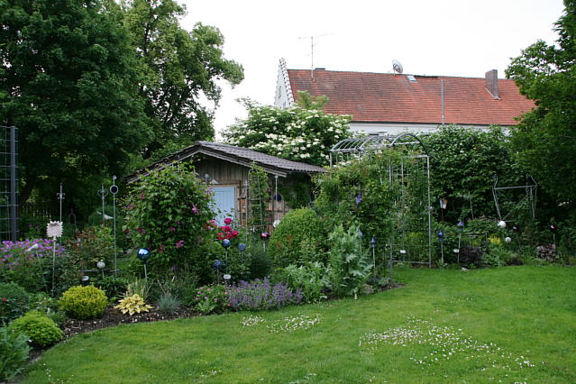 Hallo !Euere Garteneinblicke sind ja so schön, da wird man richtig neidisch. Z.Zt. blüht der Phlox so schön. Mein Haus steht im Grundstück an der hinteren Grenze, der Garten ist vorne in seiner ganzen Größe. Da wenn man reinkommt mein Gartentürl sieht man die ganze Länge(Quere). Deshalb ist es problematisch mit Farben, die müssen alle zusammen harmonieren, deshalb habe ich eigentlich nur rosa,rot,pink, weiß und blau, das paßt immer zusammen. Aber jeder hat halt andere Gegebenheiten. Das ist ja gerade das reizvolle, aber immer gefällt einem das was der andere hat.........gruß elis