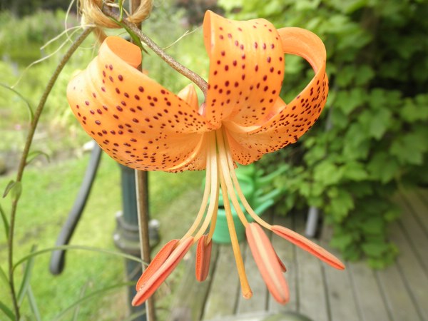 Lilium nepalense blüht derzeit auch bei mir. sie steht seit 2 jahren im garten, ohne schutz. mittlerweile sind auch schon ableger erschienen (nepalense läufert).@sigiich sehe nicht viel von deiner lilie aber sie scheint schmale blätter zu haben + keine achselbulbillen zu produzieren, daher meine ich es ist Lilium davidii. von der blühen hier auch einige, die ich als Lilium spec. bekam. ich kenne aber nur die lancifolium + die davidii (nachtrag: und amabile), die solche orange türkenbundblüten mit dunklen sprenkeln produzieren. wer noch andere arten mit solchen blüten kennt...her damit.