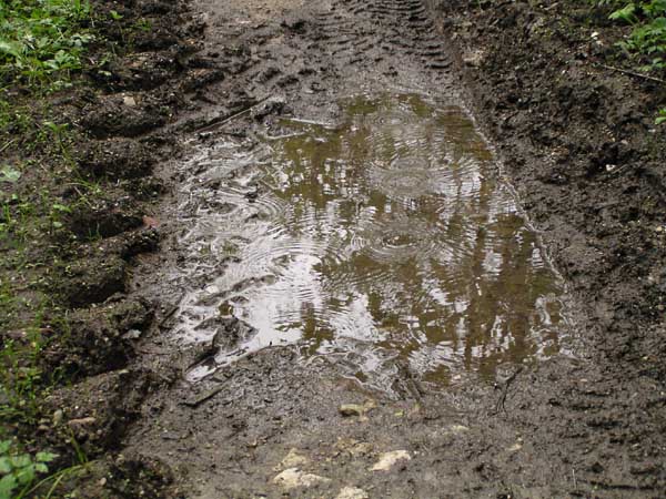 Hmm, eigentlich mag ich Regen. Ich glaube, Regen ermöglicht die schönsten Bilder. Nicht zuletzt ist ja auch Nebel so etwas wie Regen. Und Wolken sowieso. Ich habe lange gesucht um Bilder zu finden, die wenig bis keine absichtliche Ästhetik beinhalten. Bild eins ist sicher sehr trostlos. Nochdazu die Traktorspur!
